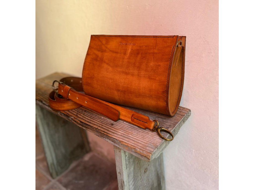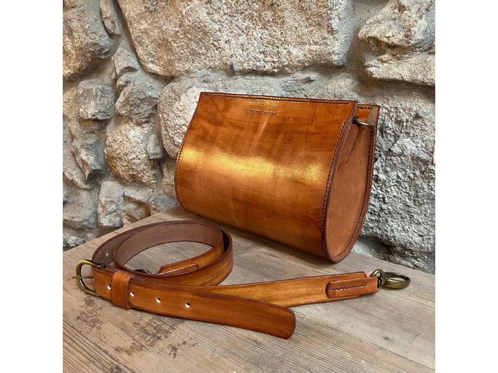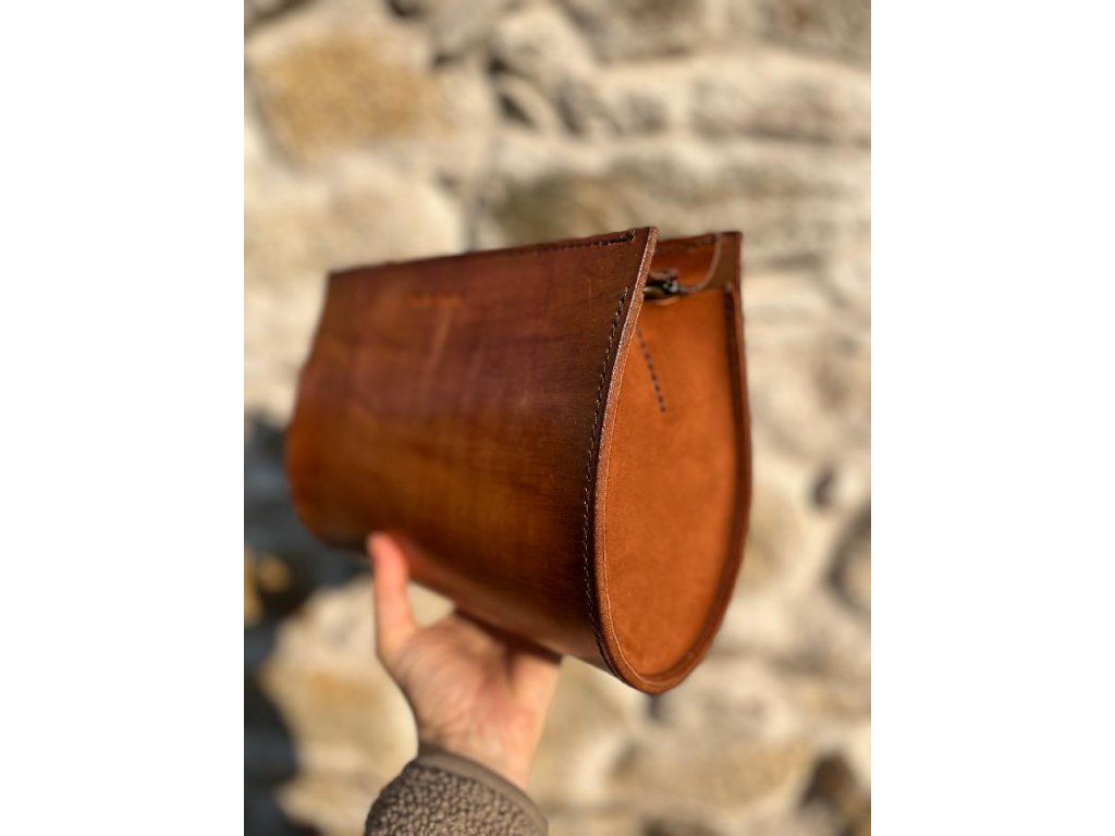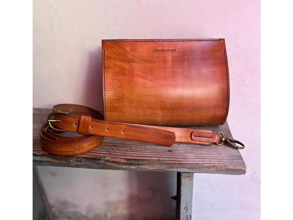Kabelka je vyrobena ze silné italské hovězí kůže, kterou jsem nabarvila technikou, kterou lze dosáhnout ,,dřevěného" vzhledu kůže. Kabelka je následně nalakovaná pro její větší odolnost. Jde od nadčasový kousek, u kterého vynikne krása přírodního materiálu.