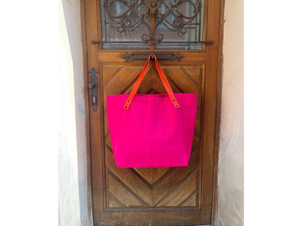 Tato objemná plátěná taška se silnými koženými uchy je praktickým společníkem na cestách. Vhodná na víkendové pobyty nebo na pláž. Taška je ušita z pevné dvojité bavlny a obsahuje velkou kapsu zvenku.