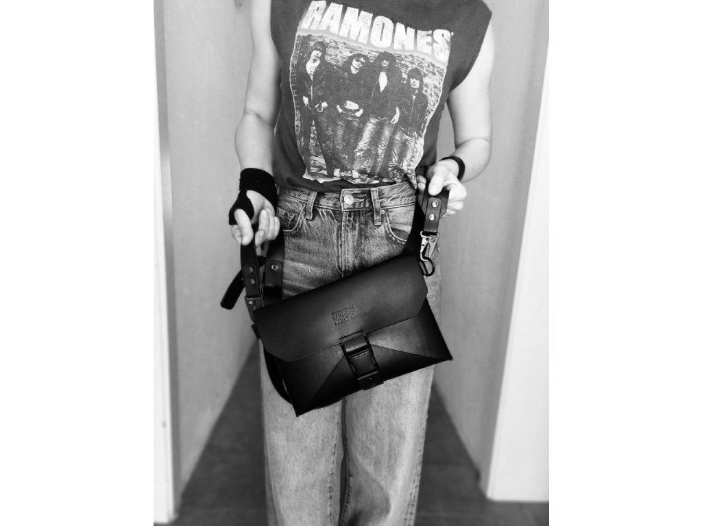 Nejoblíbenější kabelka z mého ateliéru je vyrobena ze silné hovězí kůže s černými komponenty. Jedná se o středně velkou kabelku, která se nosí spíše na těle než na bocích. Je opatřena středně dlouhým popruhem o délce 90 cm. Délku popruhu si případně můžete objednat podle potřeby. Uvnitř najdete semišovou kapsu na telefon a klíčenku. Praktický i stylový kožený doplněk, který zaujme a pozvedne i jednoduchý oděv. Hlavní výhodou této kabelky je to, že se hodí ke sportovnímu i elegantnímu stylu.