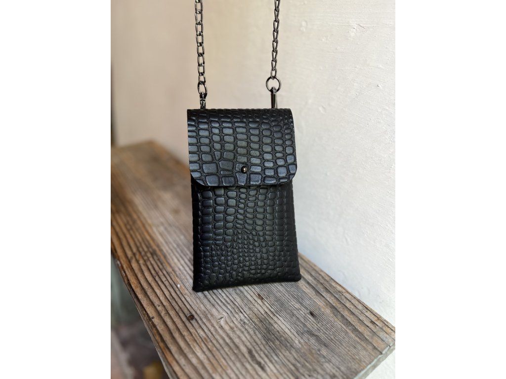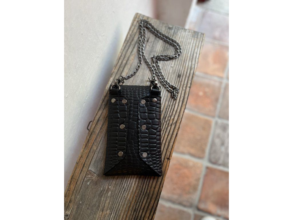 Elegantní kapsička na mobil složená z jednoho kusu silné hovězí kůže v krokodýlím vzhledu. Tuto kůži jsem si nechala připravit na zakázku v jedné z posledních českých koželužen. Do kapsičky se Vám vejde jak mobil, tak i minipeněženka.