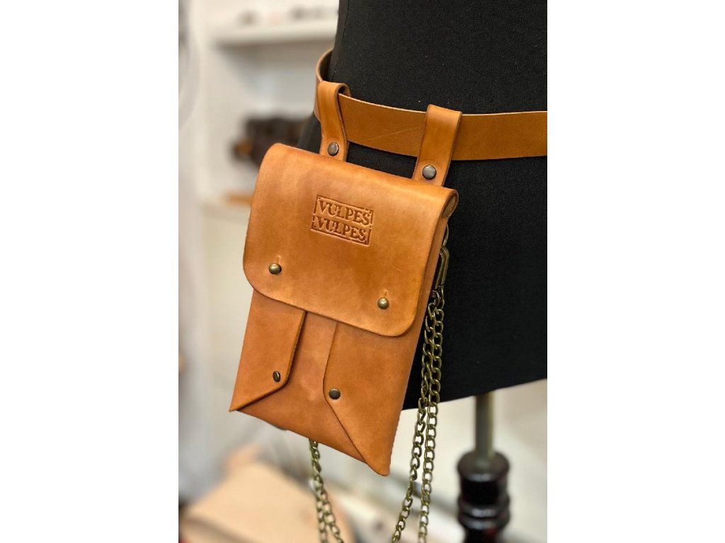 Kapsička na mobil LASTUCCIO tentokrát uzpůsobená k nošení na opasku. Zároveň můžete kapsičku nosit i na řetízku, který je součástí kompletu nebo si můžete řetízek nechat zavěšený jen jako ozdobu. Kapsička je ručně barvená a voskovaná.
