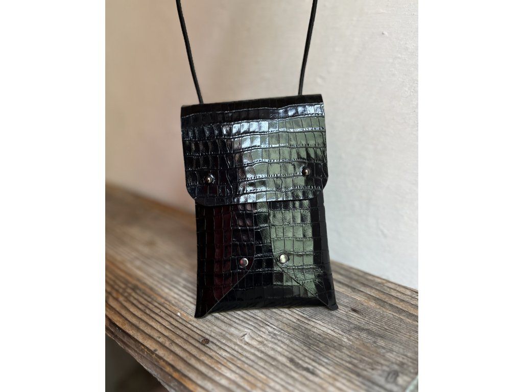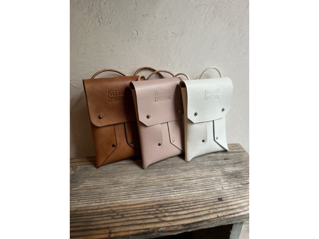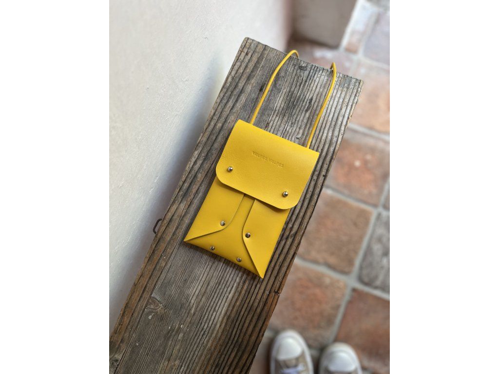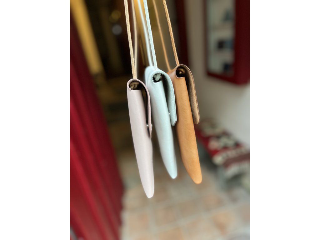 Kožená kapsička na mobil a pár drobností se zavírá na dva sedlářské knoflíky italské výroby. Kožený kulatý popruh si můžete zkrátit dle potřeby pomocí jednoduchého uzlíku. Využijete ji na procházce se psem nebo při cestování, kdy chcete mít cennosti a doklady po ruce. Kapsičku mám skladem ve více odstínech nebo Vám ji ráda vyrobím na přání.