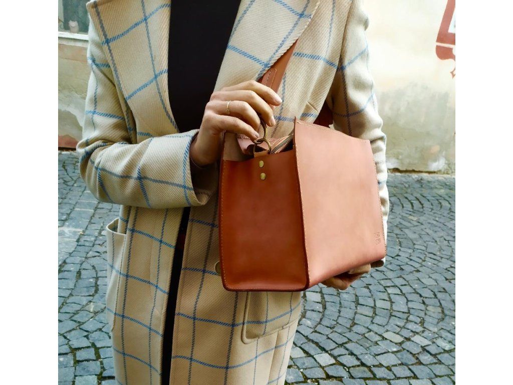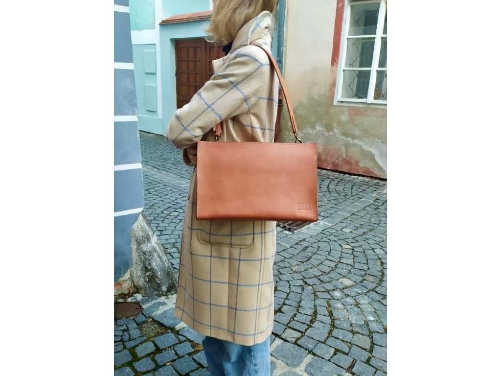 Tato částečně ručně šitá kabelka ze silné hovězí kůže se může stát praktickým společníkem při pobíhání po městě. Je to taková nadčasová klasika. I když je kabelka na pohled spíše střední velikosti, tak díky její šířce pojme opravdu hodně věcí. Uvnitř naleznete kapsu z hnědé kůže a klíčenku. Kabelka je ručně barvená a následně voskovaná díky čemuž se dosáhlo krásného přirozeného vzhledu, který bude postupem času patinovat a zrát.